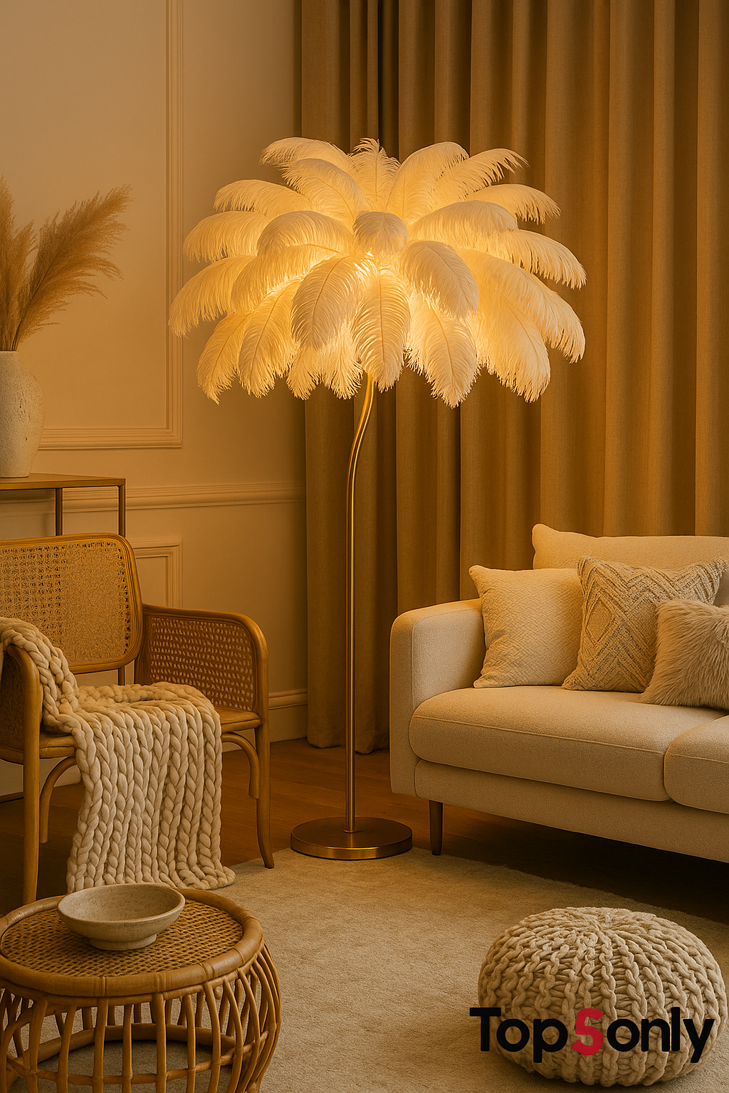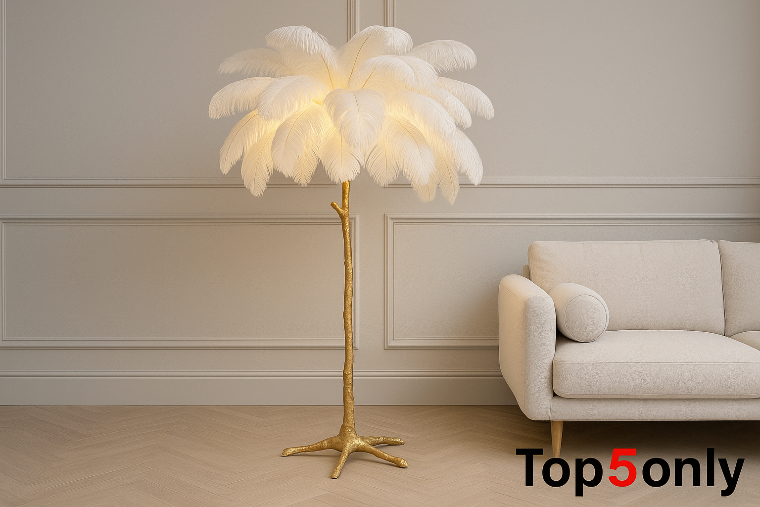 עיצוב בוהו-לוקס ייחודי – שילוב נדיר של נוצות רכות עם בסיס מוזהב בגימור מושלם