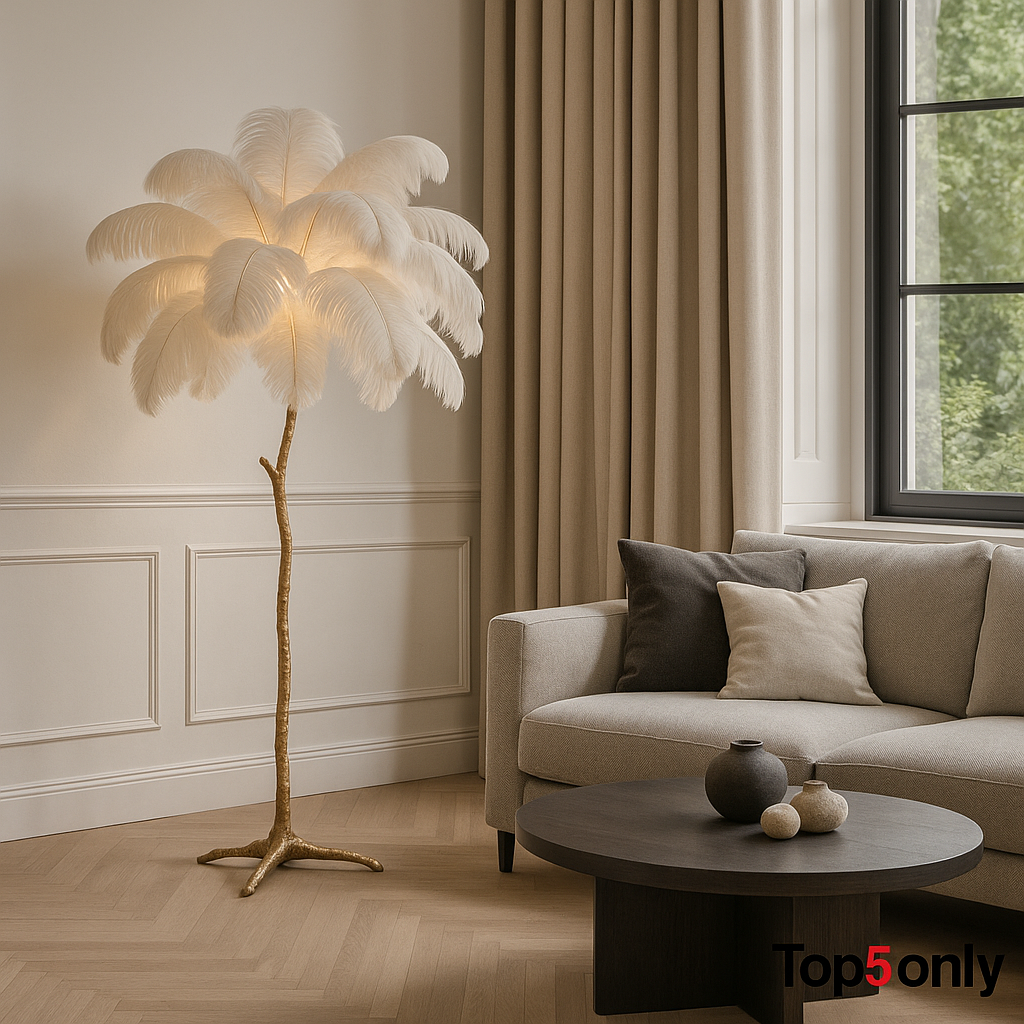 Feather Floor Lamp מנורת נוצות יוקרתית בעיצוב בוהו מרהיב